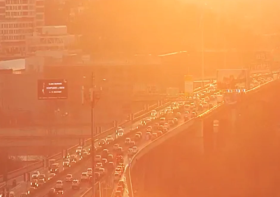 Kamere na ulicama grada rano jutros su zabeležile neobičan prizor. Beograd je u trenutku svitanja bio obavijen intenzivnim narandžastim sjajem, kao da je čitav grad na kratko "planuo" pod prvim zracima sunca.