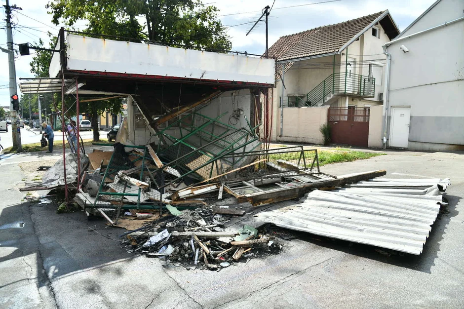 Na fotografijama sa lica mesta vidi da je tezga u koju je muškarac udario vozilom totalno uništena.