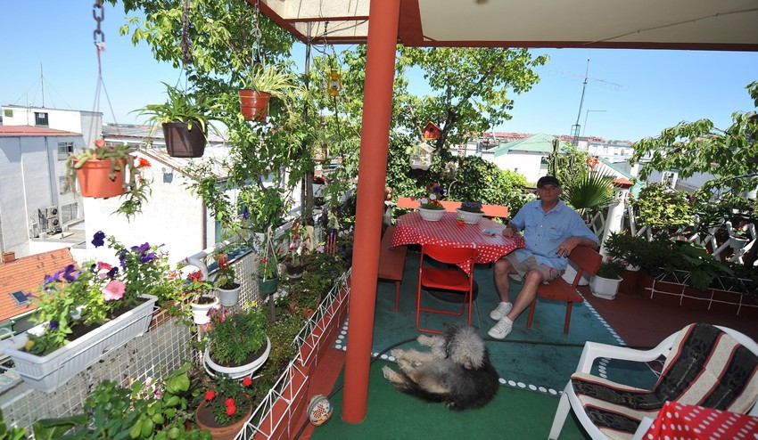 BEOGRAD - Rade i Slobodanka Jovanović napravili su zelenu oazu na vrhu zgrade u Knez Miletinoj 14. Osim raznog raznobojnog cveća, na krovnoj terasi koja je proglašena najlepšom na Starom gradu uspevaju i trešnje, a nalazi se i drvo duda i limuna, kanadski brest, kaktus, pa čak i oleander i palma iz Igala. Nekada je na ovoj terasi bio i platan, a rađale su i breskve.