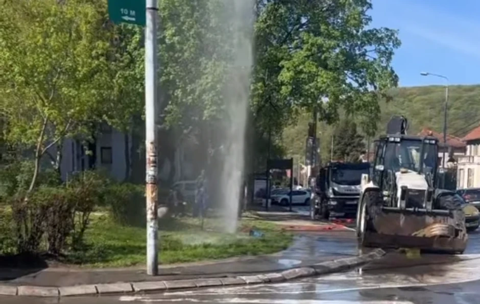 Voda je šikljala uvis poput gejzira, kod stanice Koste Živkovića. a ljudi su zaobilazili u širokom luku.