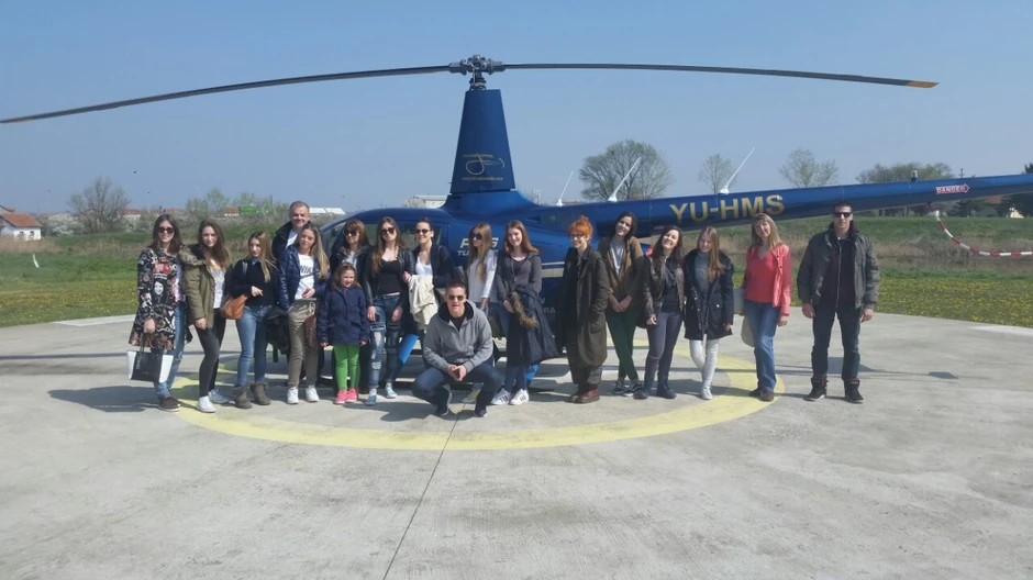 Učenici Dvanaeste beogradske gimnazije, koji su članovi Vazduhoplovne sekcije, posetili su u nedelju 20. marta školu za obuku pilota helikoptera u Dobanovcima.