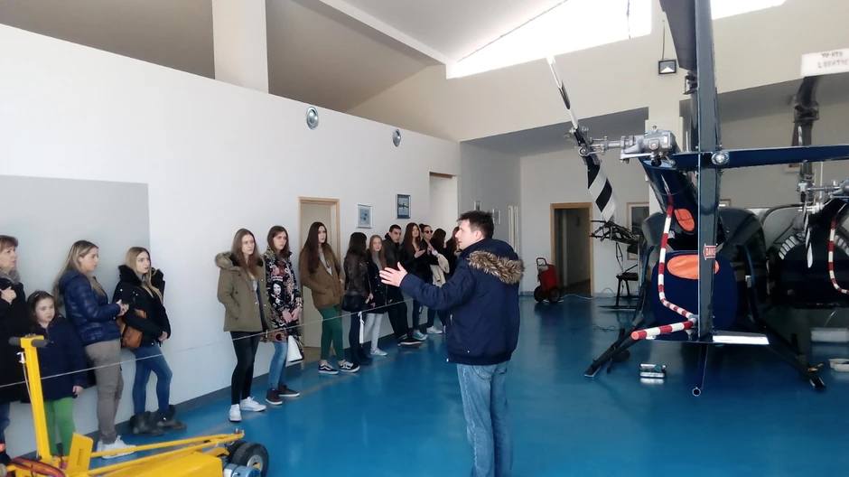 Učenici su, zajedno sa profesorima, imali prilike da se upoznaju sa karakteristikama letelica koje se nalaze u helikopterskom centru (helikopteri tipa Robinson R44 i R66).