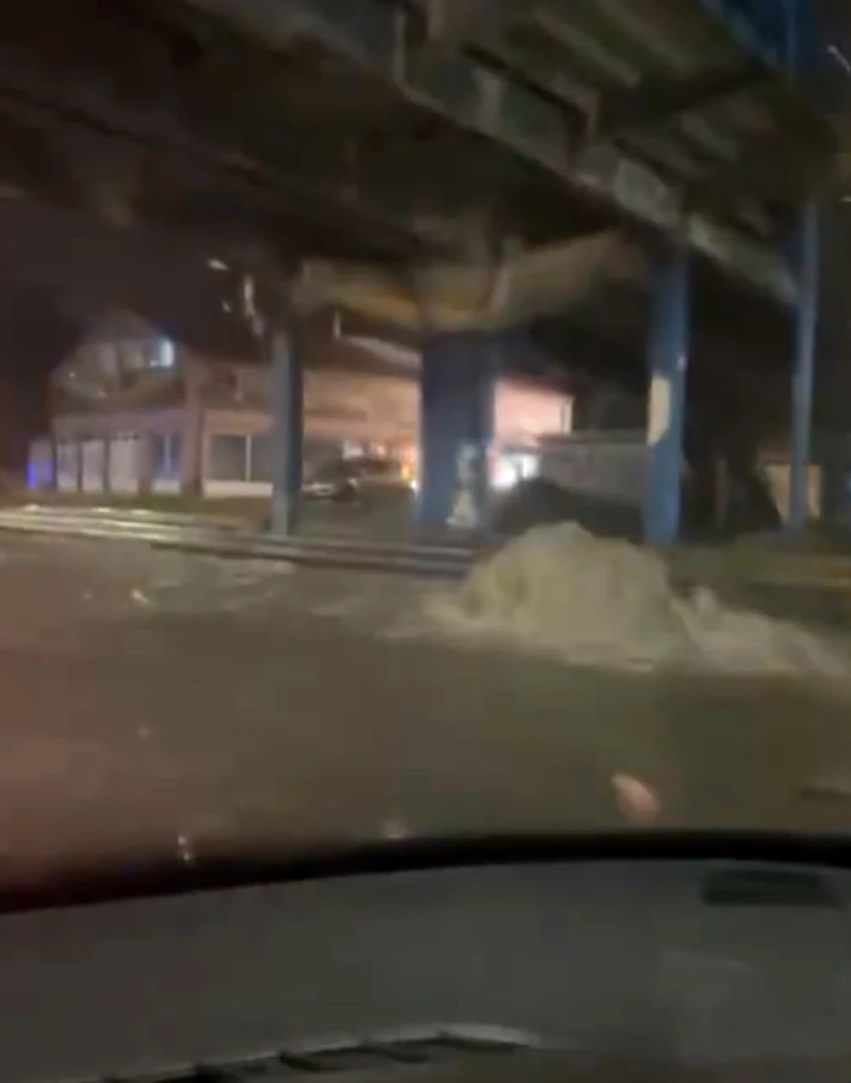 Kako se vidi na snimku objavljenom na instagram profilu "serbialive_beograd", na delu auto-putu kod Autokomande u pravcu ka Nišu, saobraćajnica se doslovno pretvorila u reku, a iz šahta šiklja voda na sve strane.