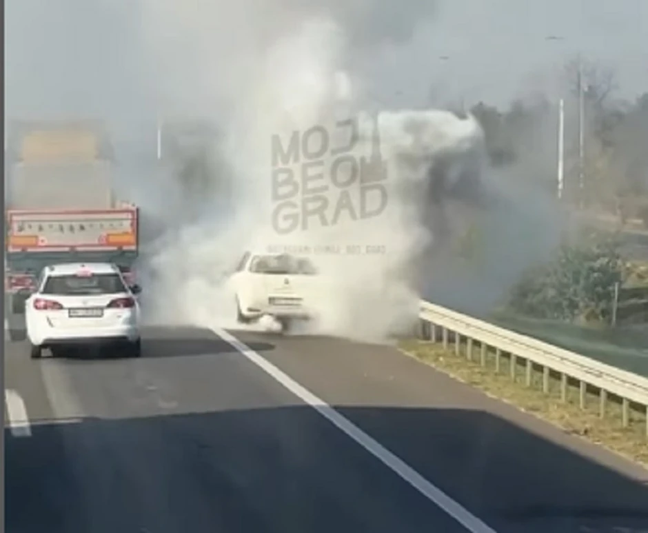 Kako se vidi na snimku, automobil se ne vidi od gustog dima koji kulja na sve strane.