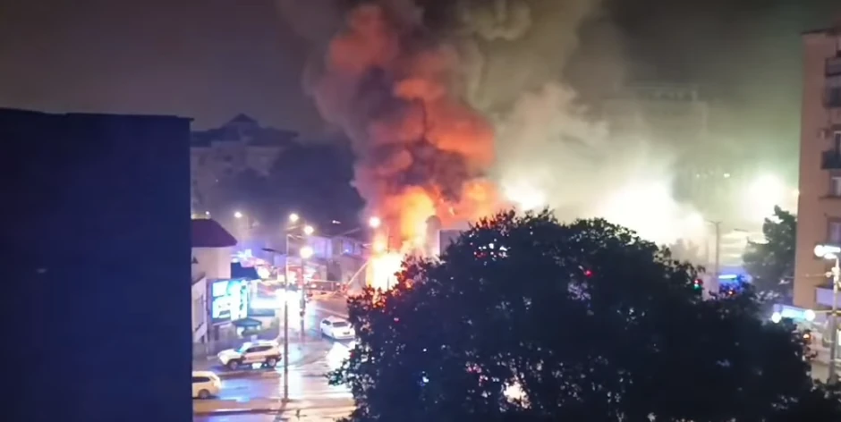 Kako se može videti na snimcima i fotografijama, plamen se uzdizao više metara u vis, dok je deo ulice i dalje blokiran.