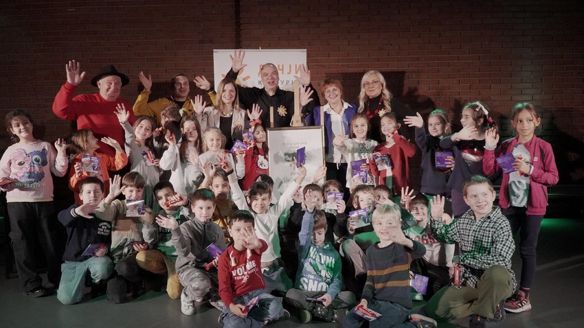 Nagradu je uručio profesor mr Dragan Marić, direktor Dečjeg kulturnog centra Beograd i Predrag Vuković - Peđolino, predsednik Upravnog odbora DKCB, koji će dodelu nagrade uveličati muzičko-scenskim programom.