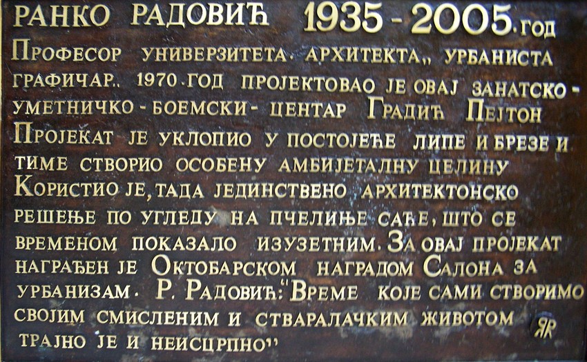 Arhitekta Ranko Radović sagradio je ovaj zanatski centar 1970. godine, a kao ideju za arhitektonsko rešenje uzeo je pčelinje saće i na relativno mali prostor smestio čak 40 radnji.