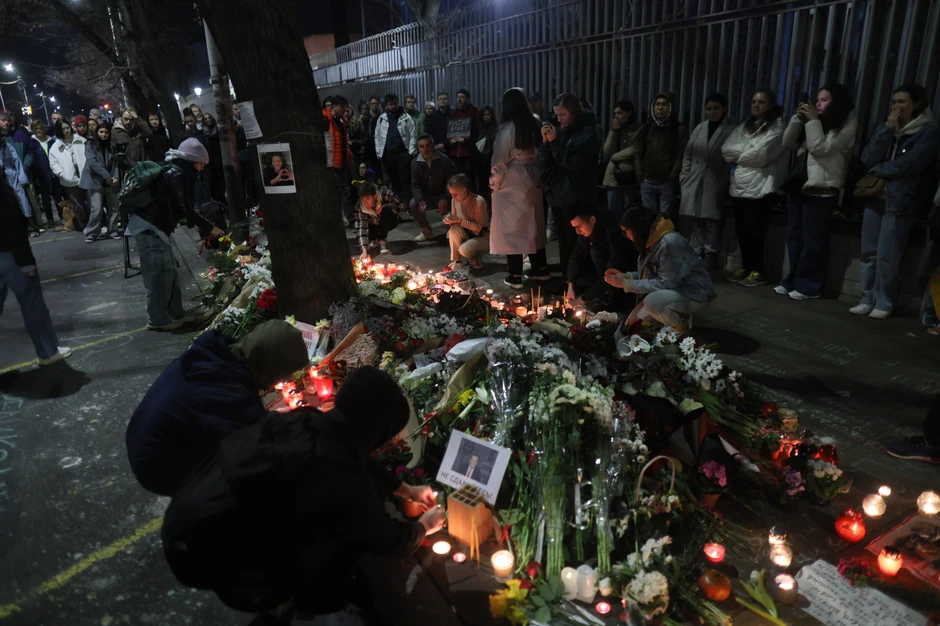 Ispred Ruske ambasade u Beogradu građani su se večeras okupili kako bi odali počast ruskom opozicionaru Alekseju Navaljnom, koji je pre dve nedelje preminuo u ruskom zatvoru, a sahranjen je danas na Borisovskom groblju u Moskvi.