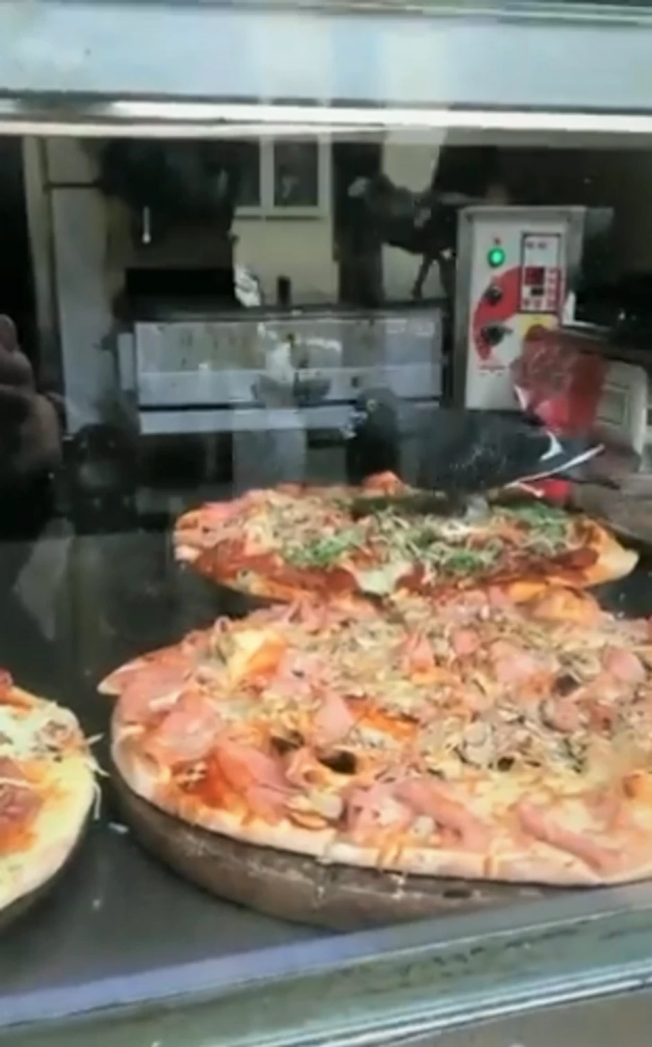 Naime, kako se može videti, po pici koja se nalazi izložena, šeta golub, koji ju je izgazio u potpunosti i pored toga je odlučio da se i sam malo posluži i degustira je. On je nakon nekog vremena odleteo, a dodatna stvar koja je zgrozila je to što niko od zaposlenih nije reagovalo, te se postavlja pitanje da li je pica na kraju završila kao nečija hrana.