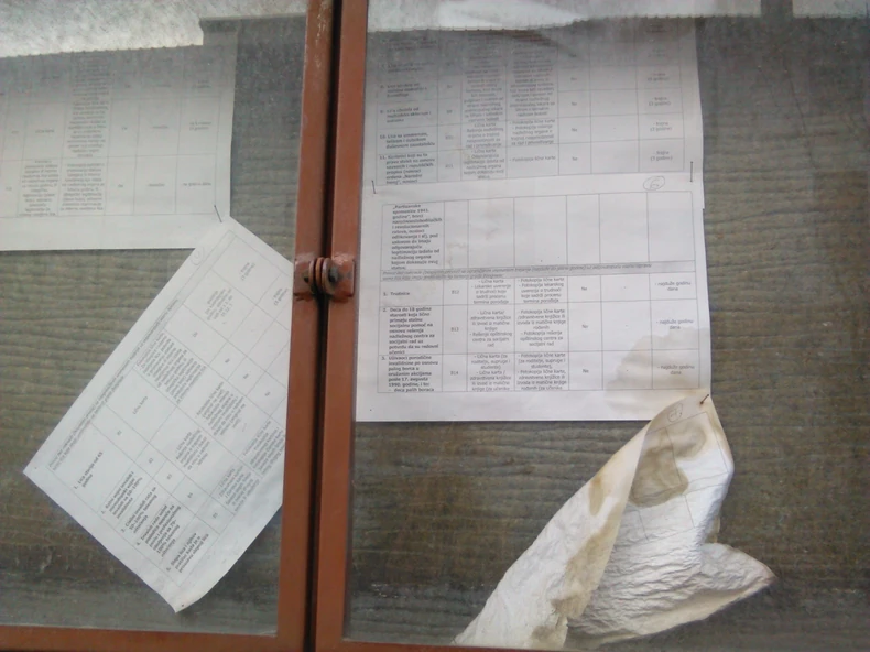 Ispred GSP-a naišli smo na oglasnu tablu, koja je uokvirena ramom i staklom, a na njoj papiri koji su presavijeni i ižvrljani.