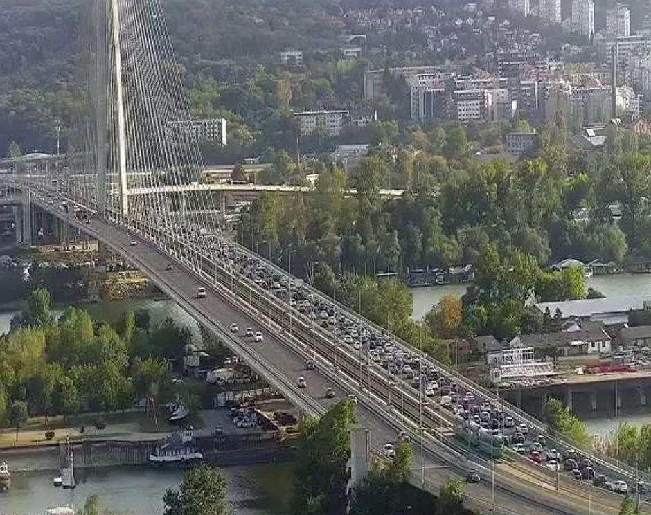 Promet je gust na glavnim gradskim mostovima, uključujući Gazelu i Brankov most