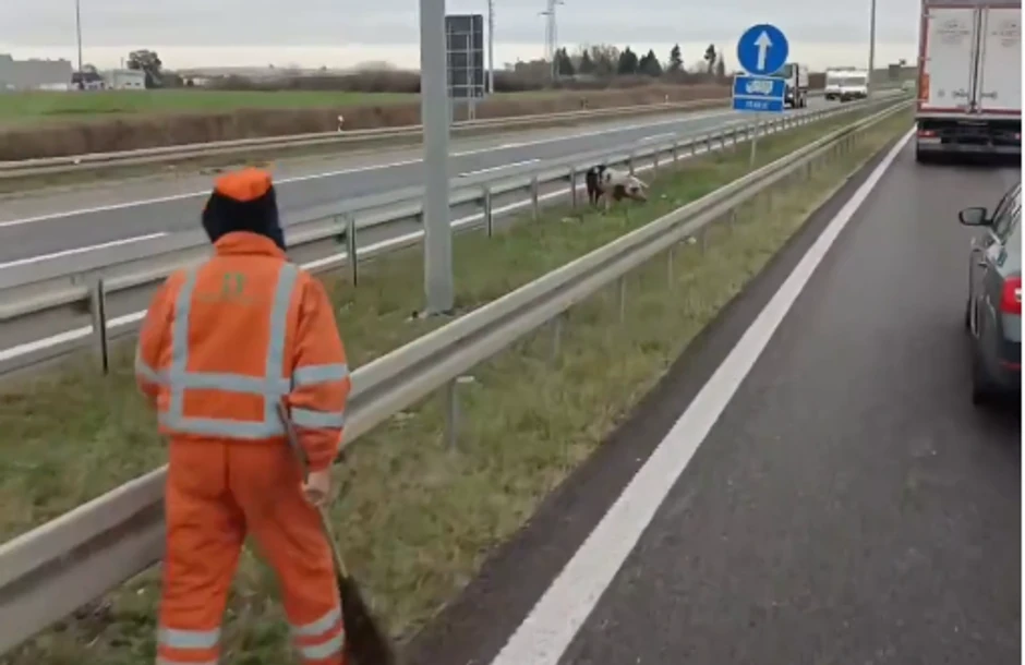 Poprilično nesvakidašnja situacija zabeležena je danas na auto-putu kod Surčina, a glavni akter je svinja!