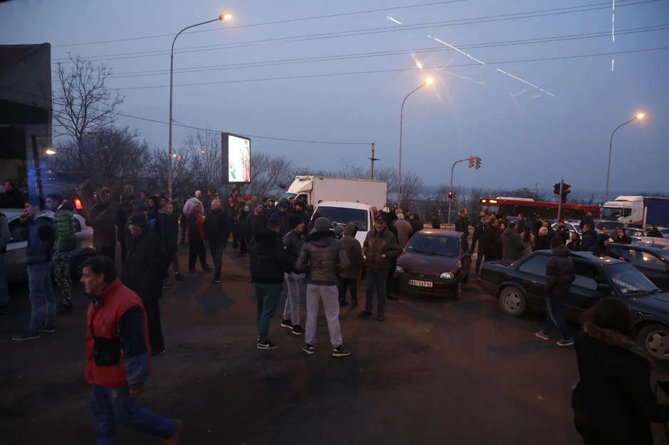 Kolone vozila pružale su se Višnjičkom i Ulicom vojvode Micka Krstića. Na raskrsnici ovih saobraćajnica bilo je stotinak ljudi, a prisutne su bile i policijske patrole.