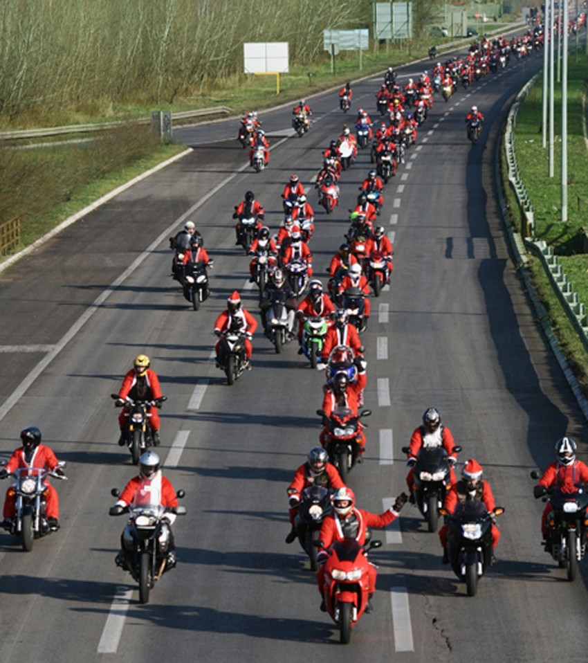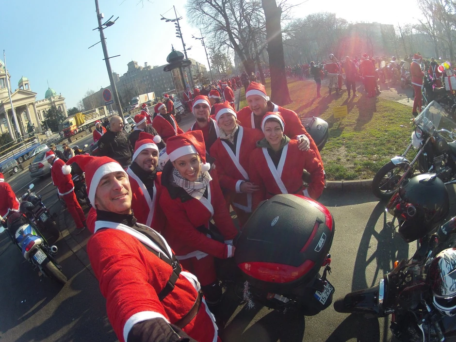 Veliki broj motociklista obučenih u odelo Deda Mraza okupio se danas ispred Skupštine grada odakle su se uputii u Dom za ometene u razvoju u Sremčici i štićenicima Doma uručili novogodišnje paketiće.