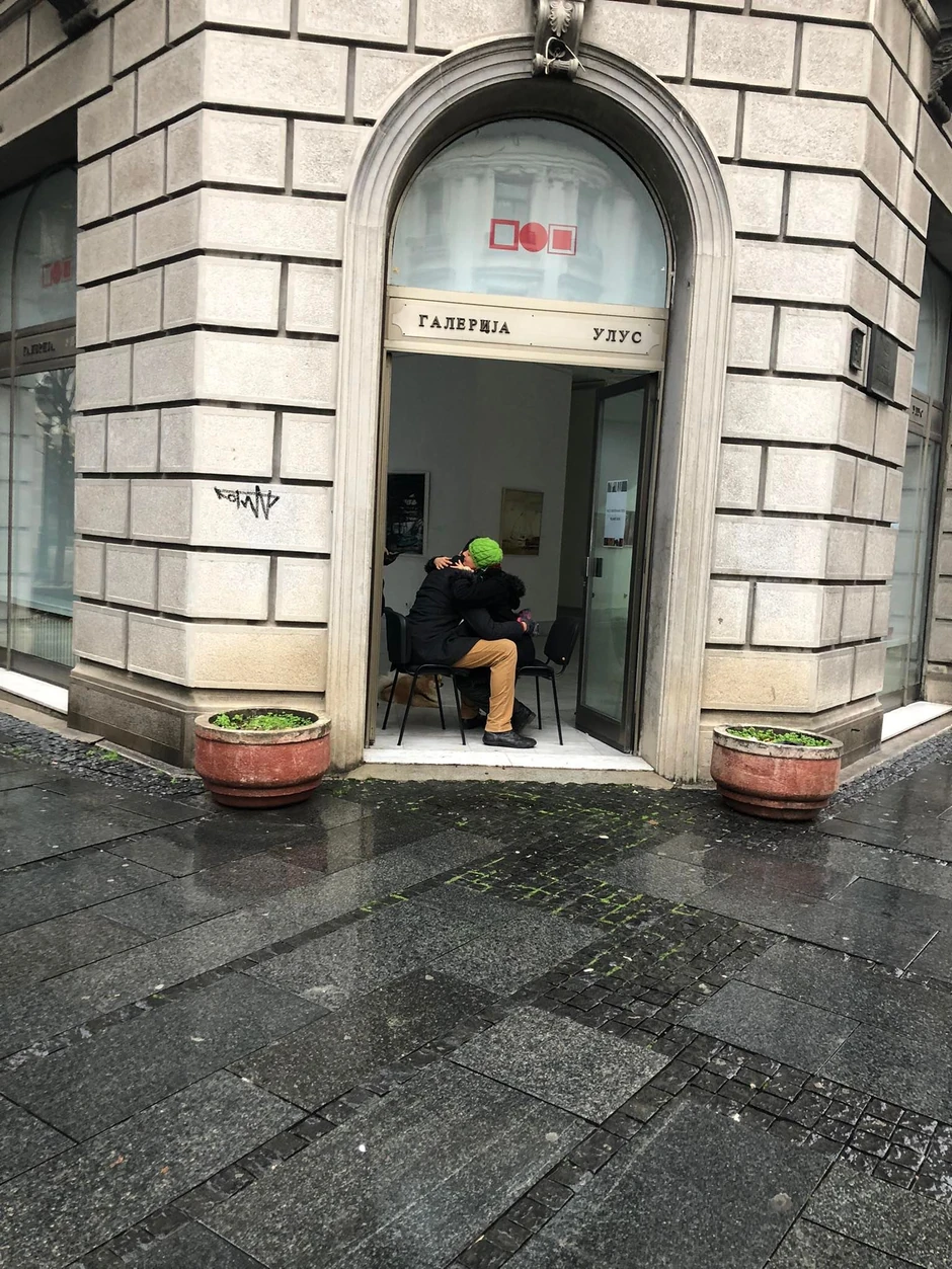 Nismo mogli da se ne zapitamo kako su uspeli da izdrže čitavu noć, kako se osećaju i kako obavljaju svoje osnovne potrebe, a oni su nam priznali da su noć proveli zagrljeni unutar ULUS Galerije zbog hladnoće, iako su prvo počeli ispred, i da jedino san niko nije mogao da im nadoknadi.