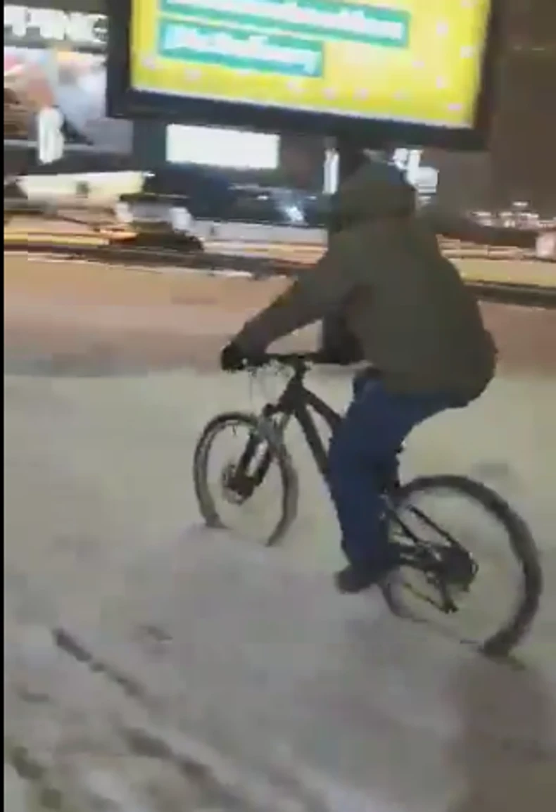 Da debeli minus, sneg visine nekoliko desetina centimetara, sneg i hladnoća ne mogu ništa odlučnima pokazuje i snimak bicikliste koji se pojavio na društvenoj mreži Tviter.