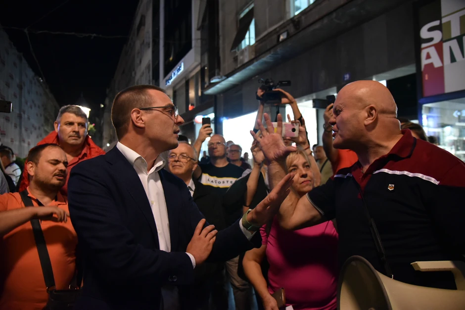 Još jedno koškanje između okupljenih dogodio se kada je sam Vesić, praćen obezbeđenjem, izlazio iz zgrade do automobila.
