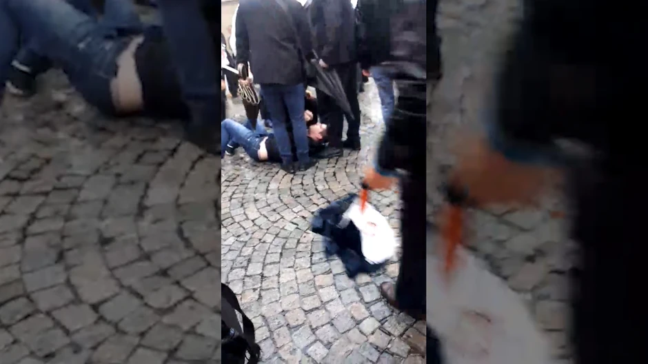 Sledećeg momenta on se našao na zemlji, okružilo ga je nekoliko muškaraca, da bi ga zatim odvelo obezbeđenje.