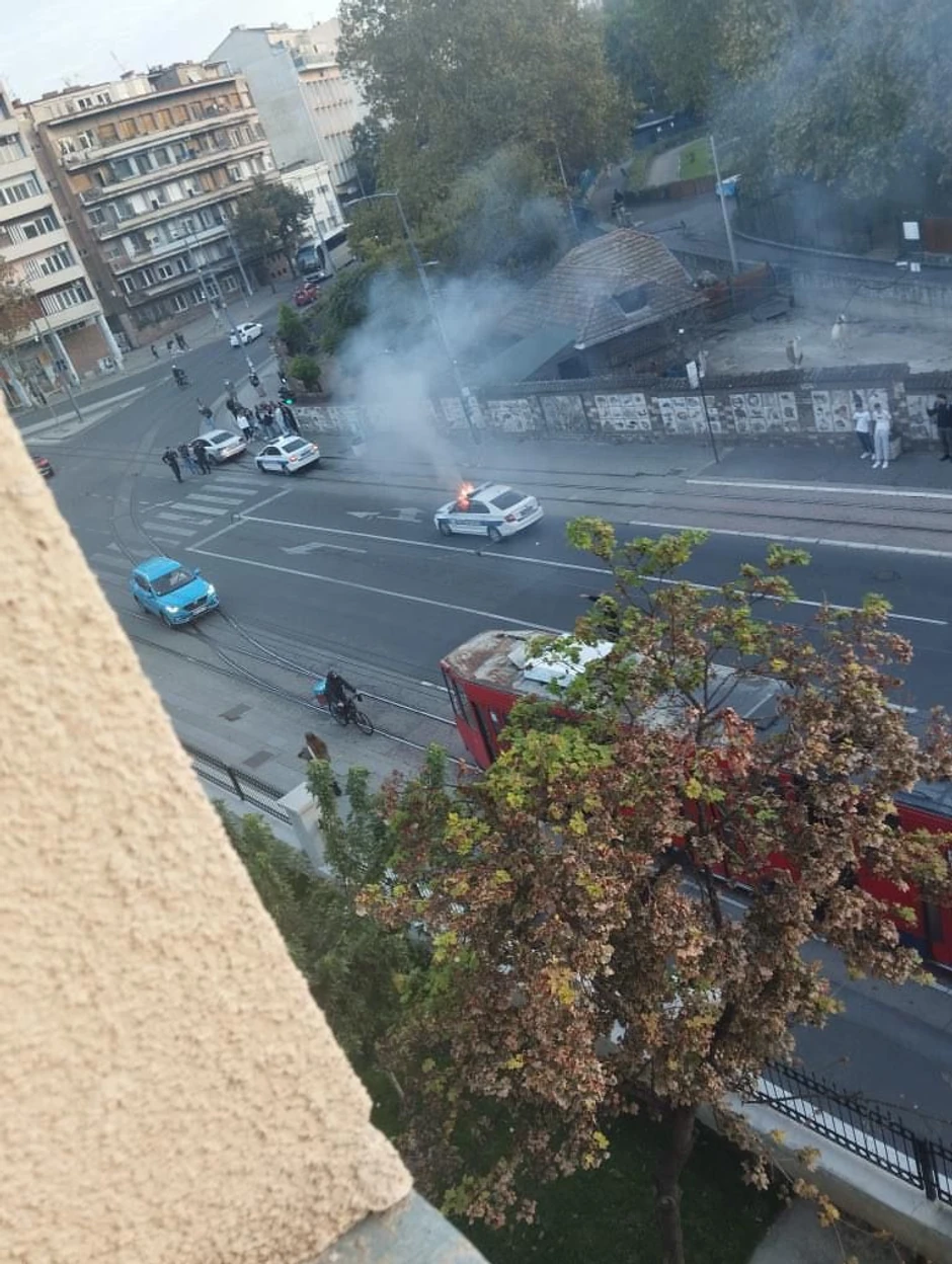 Danas je u centru Beograda kod zoološkog vrta, došlo do nesreće, kada se zapalio policijski automobil.