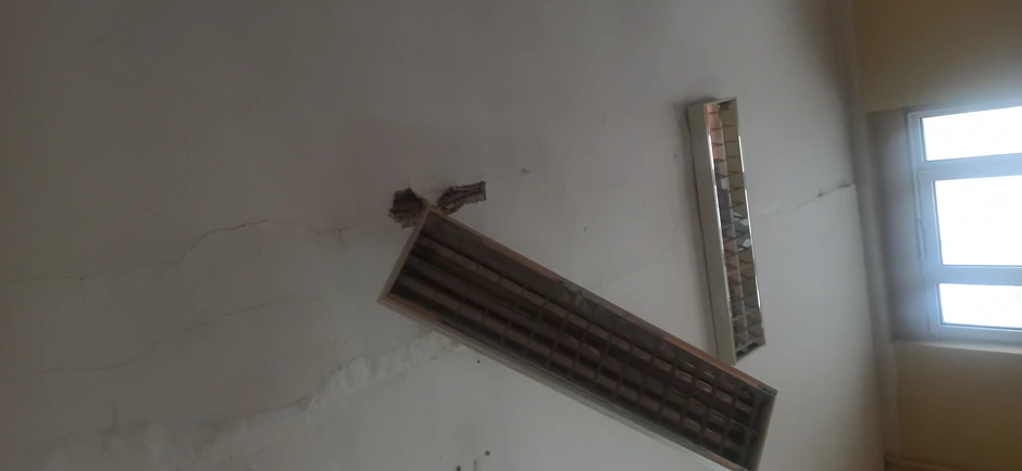 Prosuta voda je prodrla kroz parket, daske i grede nosača, do izolacionog materijala, što je izazvalo vlaženje plafona u učionici na prvom spratu, zbog čega je popustio držač armature.