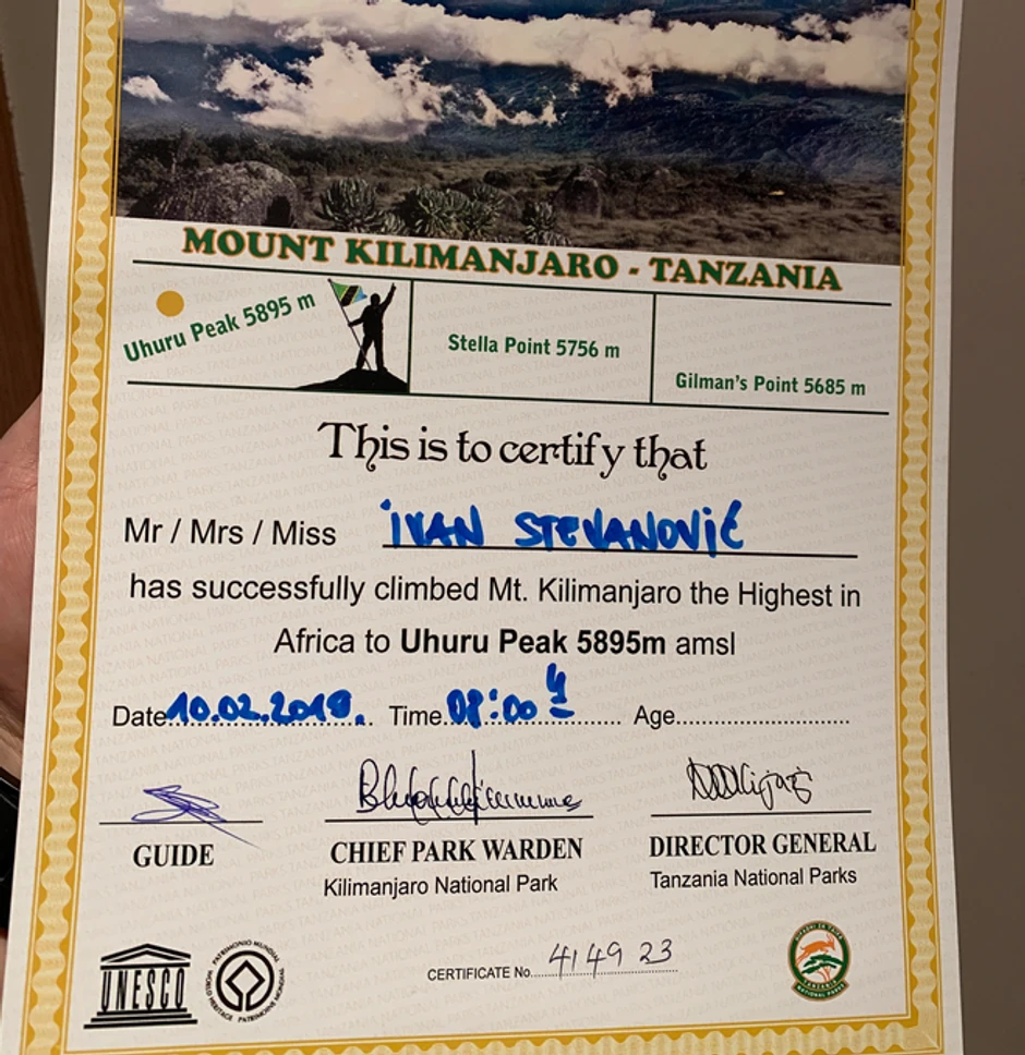 - Na određenoj visini smo imali kampove u kojima smo noćili, poslednji je bio na 4.700 metara. Oko ponoći smo krenuli ka vrhu, sa rančevima na leđima, vodom i čajevima u njima. Uspon smo završili oko osam ujutru. Tokom uspona imao sam užasne glavobolje, mučnine, jedva sam disao. Čak sam se u jednom trenutku i onesvestio, zbog prevelike nadmorske visine. Tada mi je vodič rekao "Ako ne ustaneš, ostaćeš tu". Da sam ostao smrzao bih se. Na toliko velikoj visini, jako je teško i helikopterima da dođu kako bi vraćali potpuno onesvešćene ljude - prepričava Stevanović.