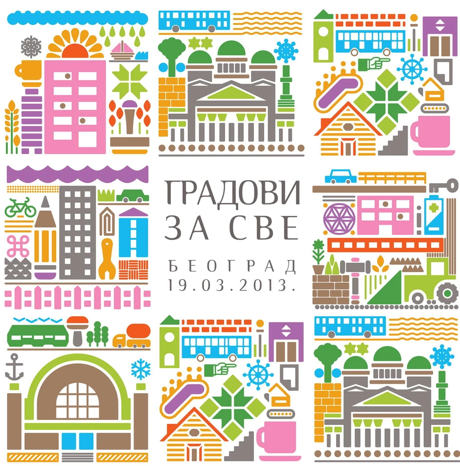 Postavka „Gradovi za sve“ predstavlja inovativna arhitektonska i dizajnerska rešenja izrađena prema principu „Dizajn za sve“ koja mogu značajno da pospeše kvalitet života ljudi sa umanjenim fizičkim sposobnostima i odnos društva prema njima. Pomenuta rešenja su primenjena na evropskim projektima iz sfere industrije, tehnologije, infrastrukturnog planiranja i zaštite životne sredine.