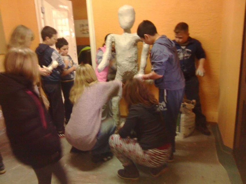 Mladi Surčinci su ponosno objašnjavali posetiocima izložbe način izrade figura od novina, drveta, gipsa, kao i proces spajanja delova, izrade detalja, šmirglanja, bojenja i šivenja odeće.