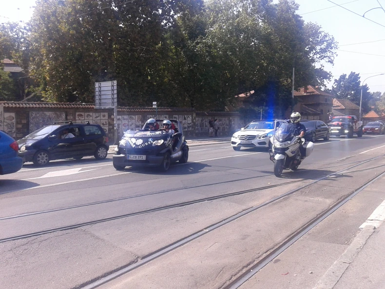 Dvadesetak sportskih automobila prodefilovalo je podno Kalemegdana u pratnji policije, što je privuklo pažnju prolaznika koji su znatiželjno posmatrali kolonu.