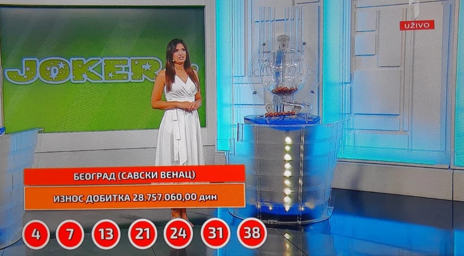 Srećni tiket je uplaćen u opštini Savski venac u Beogradu. Dobitnik je osvojio 28.757.060 dinara, a dobitna kombinacija je 4, 7, 13, 21, 24, 31, 38.