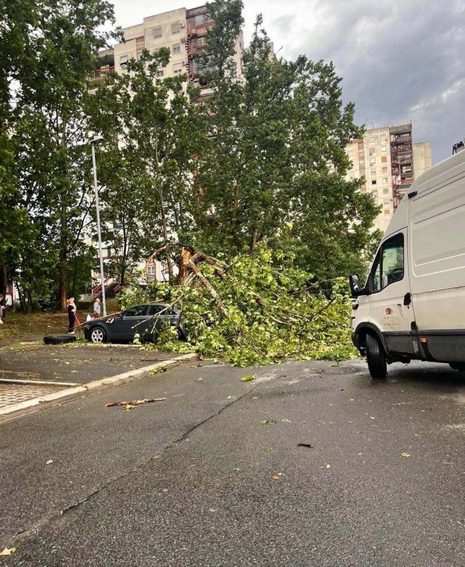 Kako je moguće videti na fotografijama sa društvenih mreža, olujni vetar čupao je grane drveća, a neka stabla je i oborio.