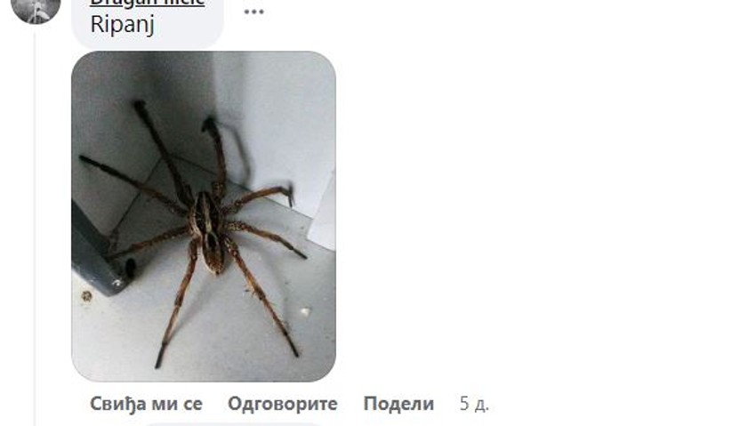 Naime, slika koja je stvarno začudila Beograđane stigla je iz Ripnja gde je uslikan još veći primerak druge vrste pauka, koja je potpuno je iznenadila članove ove grupe.