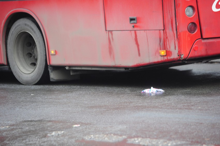 Za ženom je na ulici ostala kesa koja joj je najverovatnije ispala u trenutku kada ju je udario autobus.