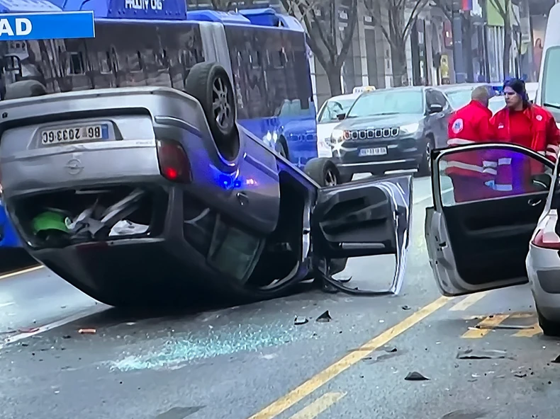 Kako je reporterka Blica izvestila sa lica mesta, putničko vozilo marke reno kretalo se saobraćajnom trakom za autobuse, dok se drugo putničko vozilo kretalo unazad, te je potom i udarilo u reno i prevrnulo se na krov.
