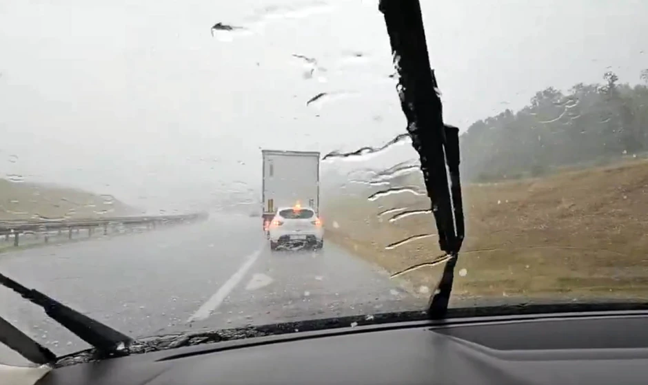 Kao što je danas najavljeno u upozorenju Republičkog hidrometeorološkog zavoda Srbije (RHMZ), grad veličine oraha pogodio je u popodnevnim časovima auto-put "Miloš Veliki".