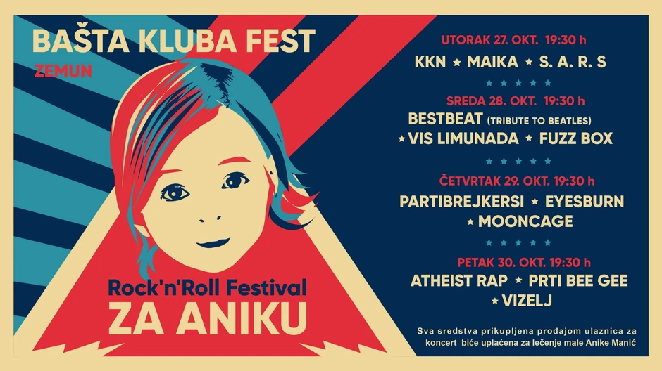 Od utorka do petka u klubu "Fest", u Zemunu, sa početkom u 19.30 sati najveće zvezde rok scene će svirati u humanitarne svrhe, za Aniku Manić. Sav prihod od prodaje karata i prodaje pića će biti doniran za gensku terapiju koja će Aniki omogućiti da diše, ima detinjstvo i živi lep i dug život.