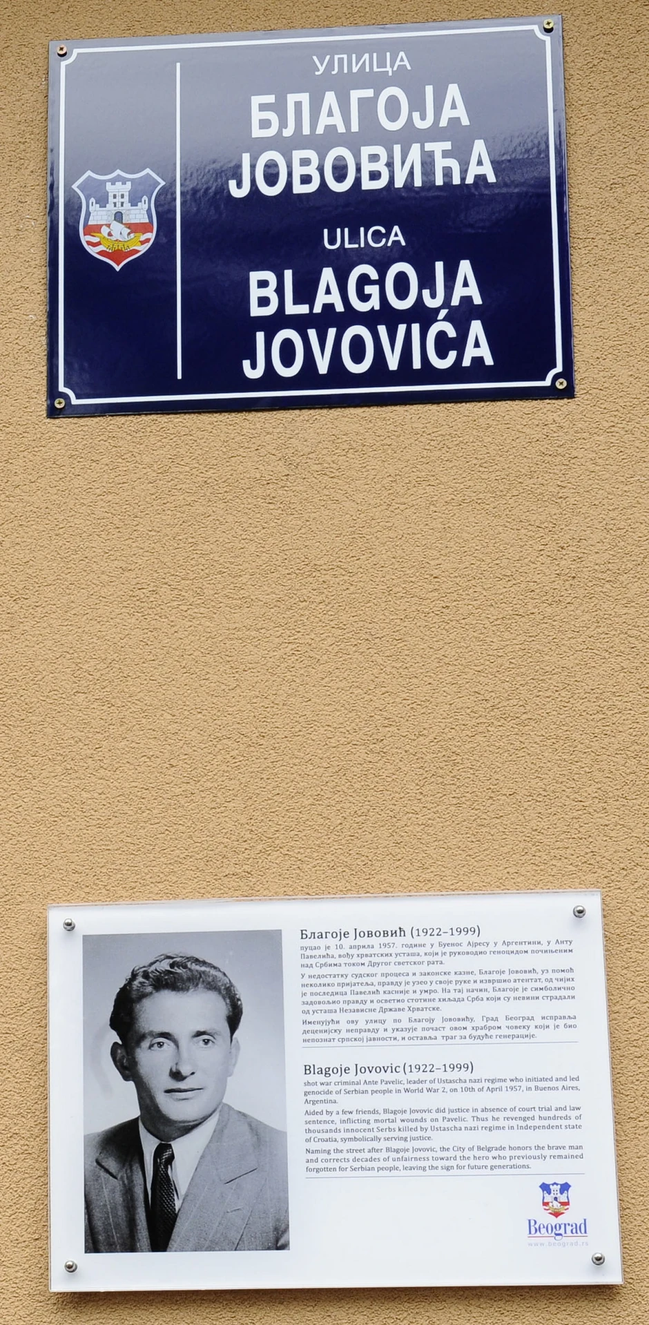 Vesić je podsetio da je ova ulica danas dobila ime po Blagoju Jovoviću koji je 10. aprila 1957. godine smrtno ranio poglavnika ustaške Nezavisne države Hrvatske Antu Pavelića.