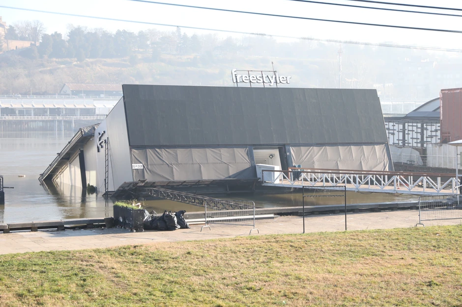Jutro nakon što je potonuo popularni beogradski splav "Fristajler" na Savi, vide se i dalje ostaci sinoćne meteži i panike koja je zavladala među gostima kada je voda velikom brzinom počela da nadire u objektat.