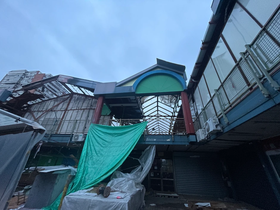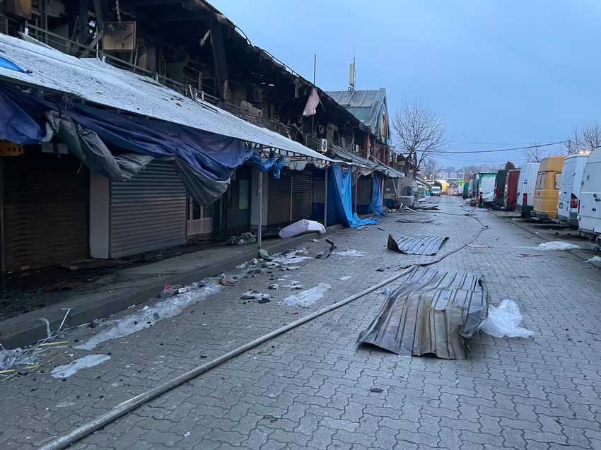 Na sve strane su razbacane stvari iz desetina prodavnica, dim se i dalje negde vidi, a čađ i garež se i dalje snažno osećaju.