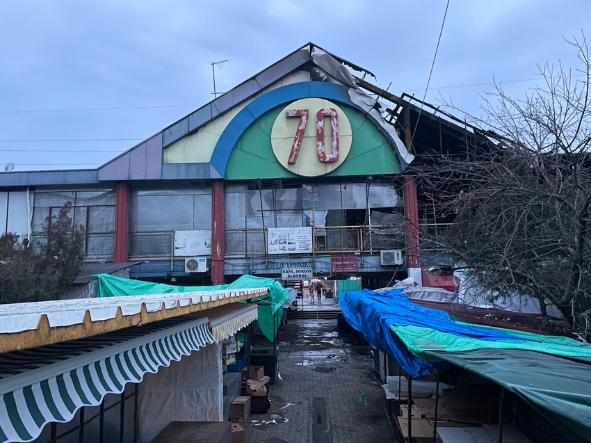 Ispred Kineskog tržnog centra u Bloku 70 na Novom Beogradu, dan posle jezivog požara, potresne scene. Tu su i dalje vatrogasci i policija pod rotacijom koja ne dozvoljava ljudima da priđu uništenom objektu.