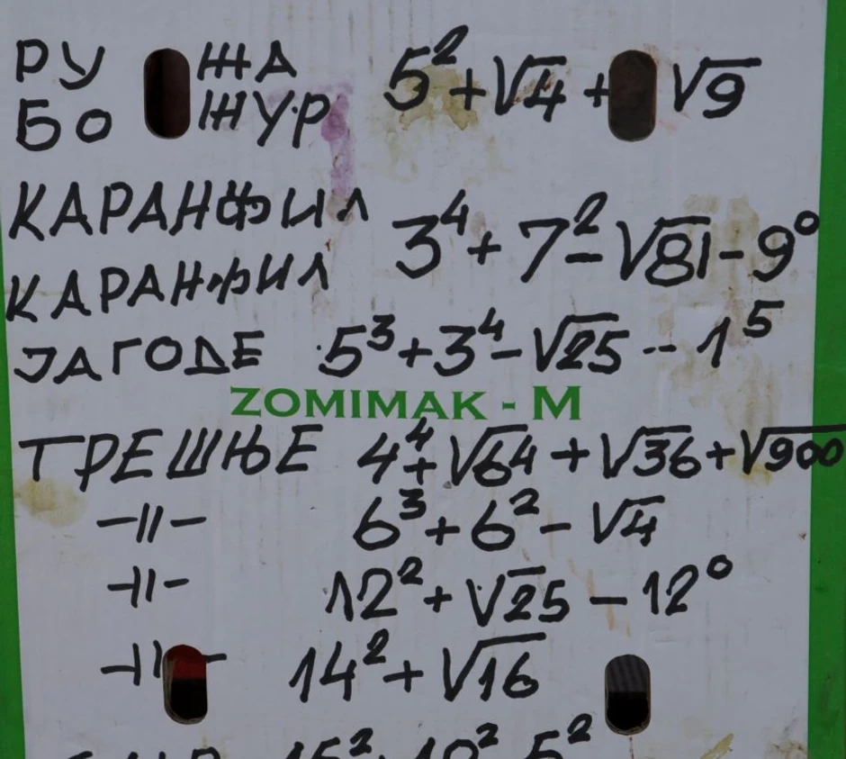 Koliko vam koštaju trešnje? 4⁴+√64+√36+√900! A jaje? 3²+√16!