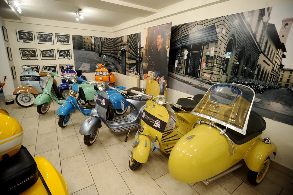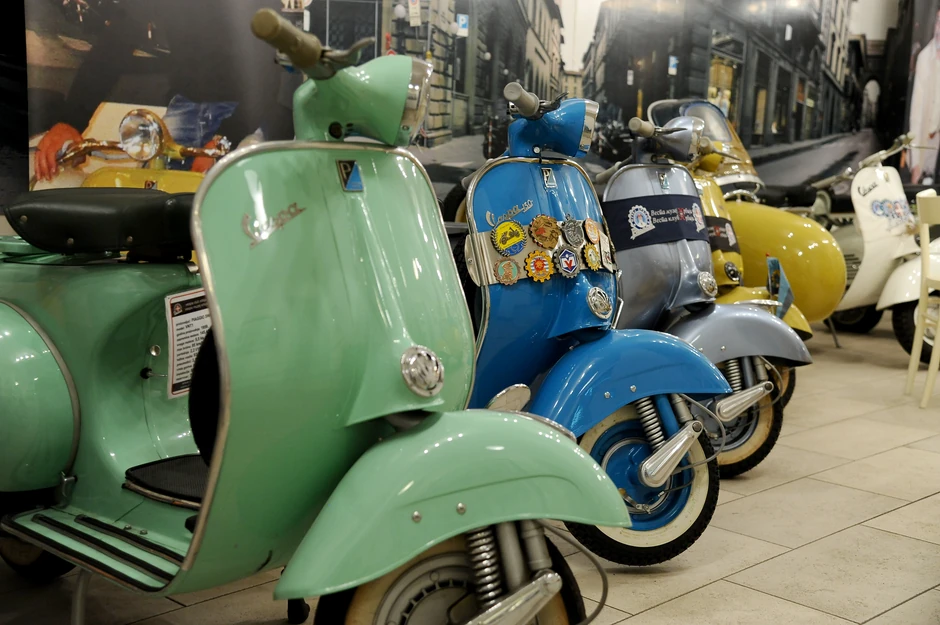 Kolekcija vespi u muzeju je impozantna. Tu je na primer, dvobojna vespa, kao i tri vespe koje predstavljaju "sveto trojstvo" u ovom svetu kojima svaki muzej može da se ponosi, a to su "džiat 160", "super sport 180" i "reli 200".