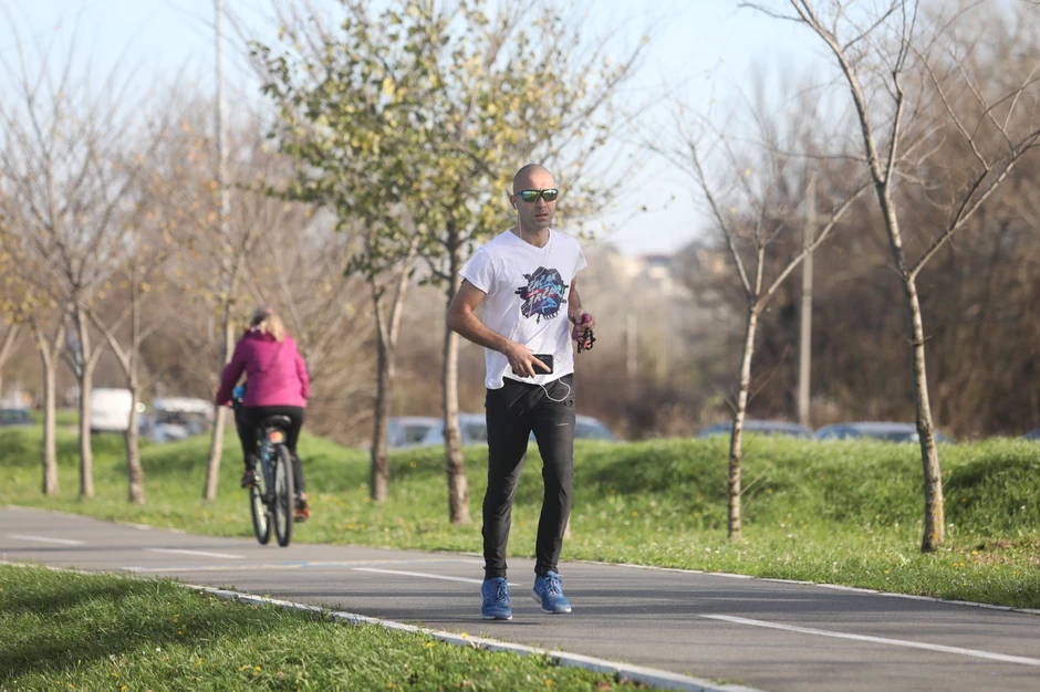 Nemali broj Beograđana odlučio se na vežbanje - bilo je onih koji trče, voze bicikle, rolere, dok su se mogle videti i organizovane grupe vežbača tik uz reku.