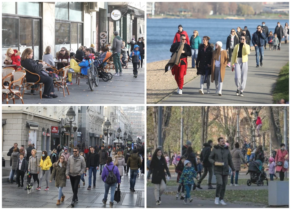 Prolećne temperature u decembru izmamile su, uprkos novim oštrim merama, Beograđane napolje, a deo njih i pravac u bašte zatvorenih kafića. Tako su bašte pojedinih lokala u centru grada, iako su svi ugostiteljski objekti zatvoreni tokom vikenda kao deo mera u borbi protiv pandemije korona virusa - bile pune.