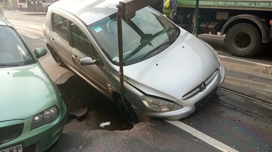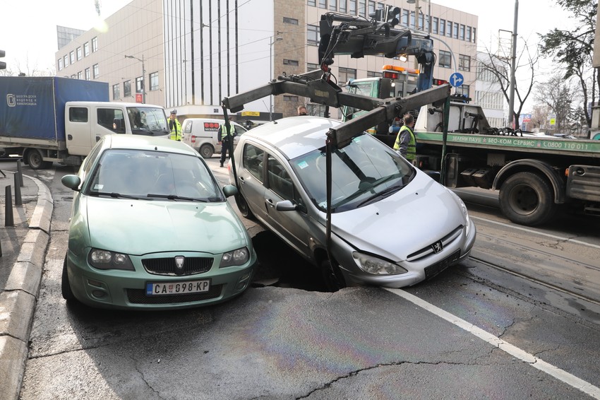 Na uglu Starine Novaka i Ilije Garašanina prekjuče nešto posle jedan sat popodne došlo je do pucanja asfalta koji je praktično progutao dva automobila. Slična situacija dogodila se i u decembru na Voždovcu kada je kamion upao u krater na asfaltu.