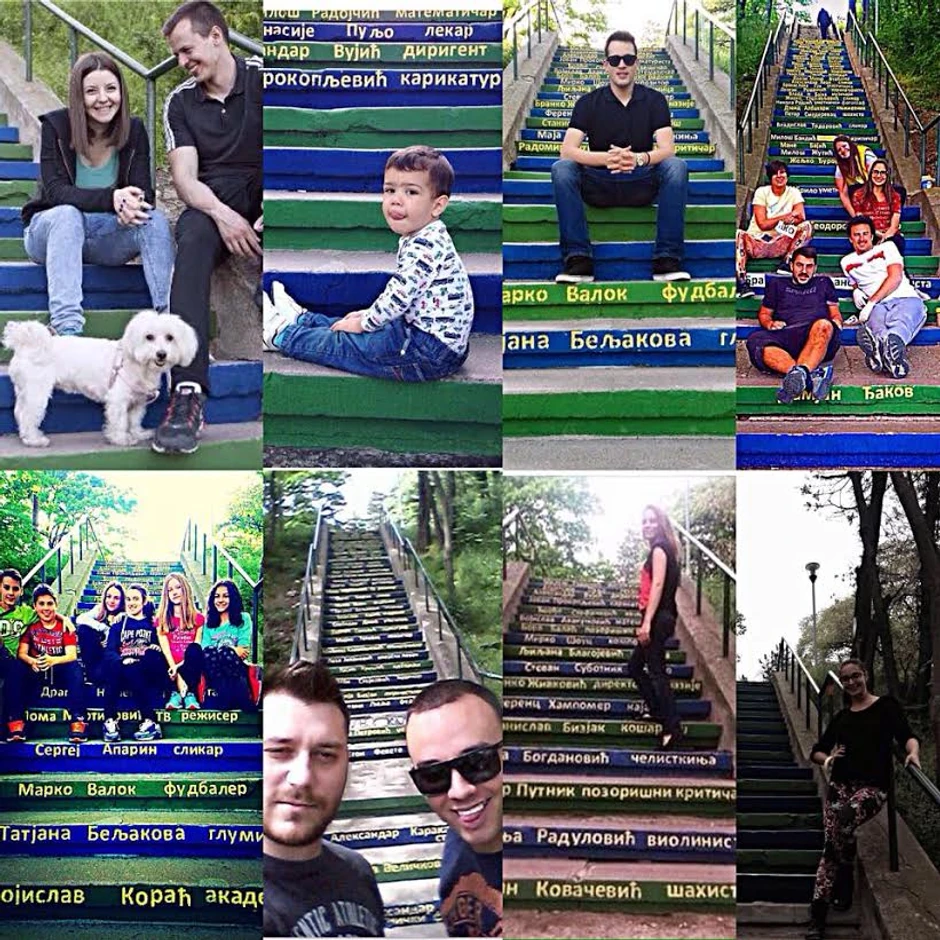 Kao što se imena poznatih holivudskih umetnika mogu videti na zvezdama Staze slavnih, tako su i poznati žitelji Zemuna dobili svoj kutak - na stepenicama. Plavo-zelene stepenice koje vode do Kalvarije krasi 128 imena poznatih Zemunaca, a ovaj projekat pod imenom "Zemunci za stepenice" pokrenuo je Nenad Hegediš, čiji je cilj da mesto gde živi ceo život obogati novom turističkom atrakcijom i ostavi istorijski trag. Hroničar i istoričar Zemuna Branko Najhold, sastavio je širi spisak uglednih ljudi iz ove opštine, nakon čega se putem "fejsbuka" glasalo čije ime će se naći na nekom od stepenika.