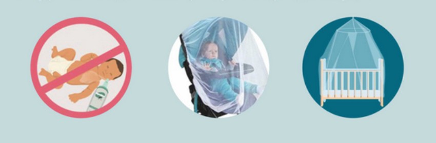Repelent je zabranjeno koristiti kod novorođenčadi mlađe od dva meseca, već ih treba obući u odeću dugih rukava i nogavica, a kolica, krevece i nosiljke potrebno je zaštititi mrežama za zaštitu beba od komaraca.