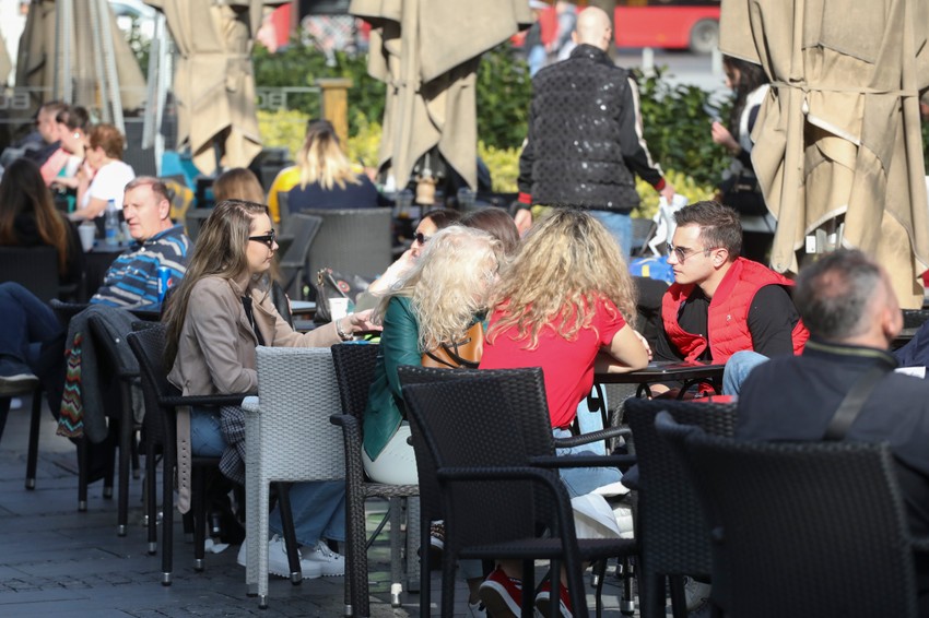 Kako su na snazi pooštrene mere protiv korona virusa ugostiteljski objekti služe kafu za poneti, pa su mnogi odlučili da je popiju u baštama ispred kafića.