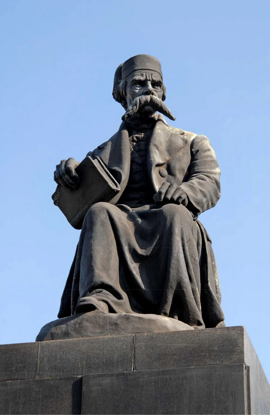 Visoko na postamentu Vuk Stefanović Karadžić, predstavljen sa svojim karakterističnim brkovima i knjigom u ruci, 85 godina krasio je skver koji je po njemu poneo ime "Vuk".