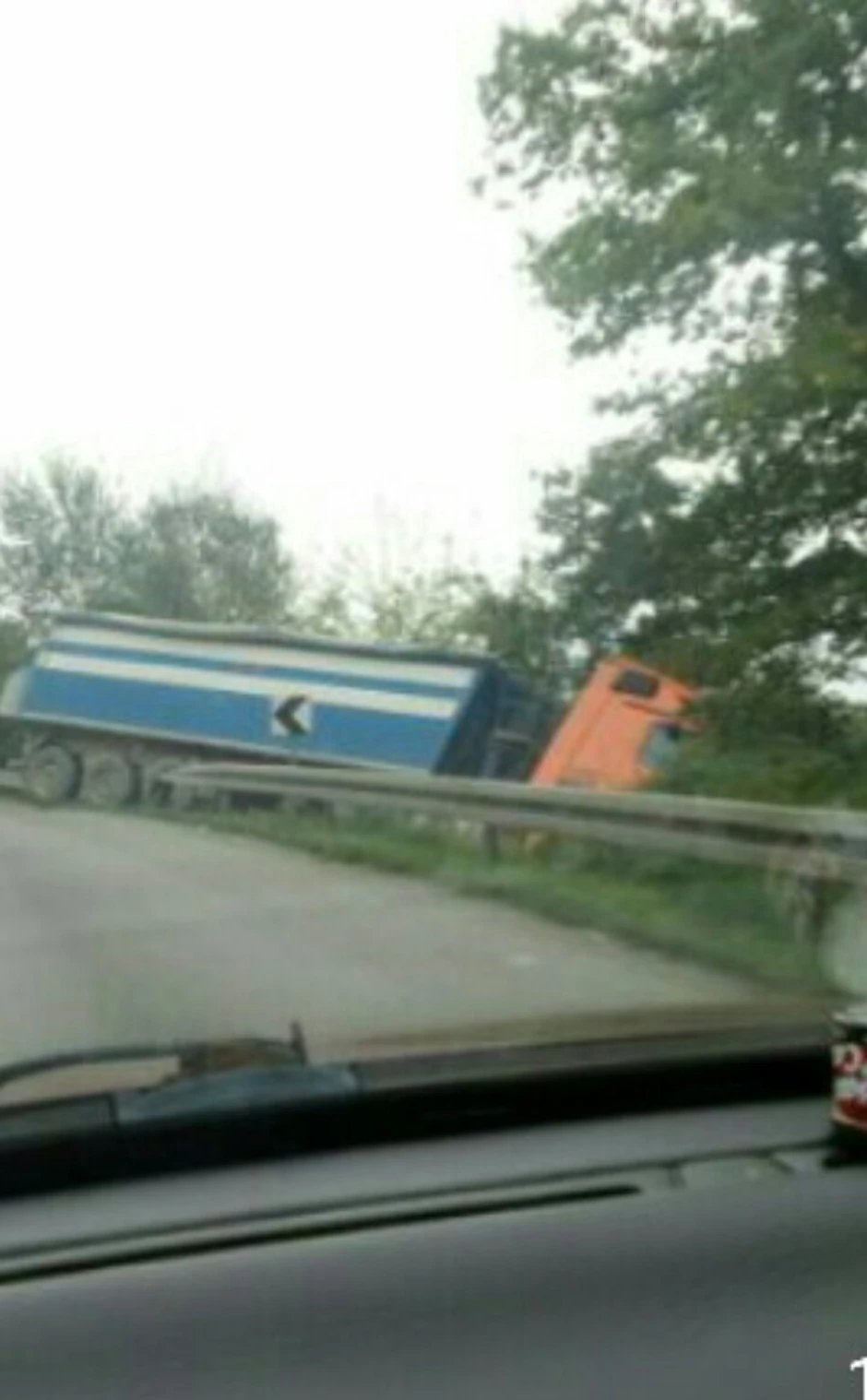 Ovog popodneva kod mesta Dubokog, koje se nalazi između Bariča i Umke, kamion je sleteo sa puta probivši zaštitnu ogradu.