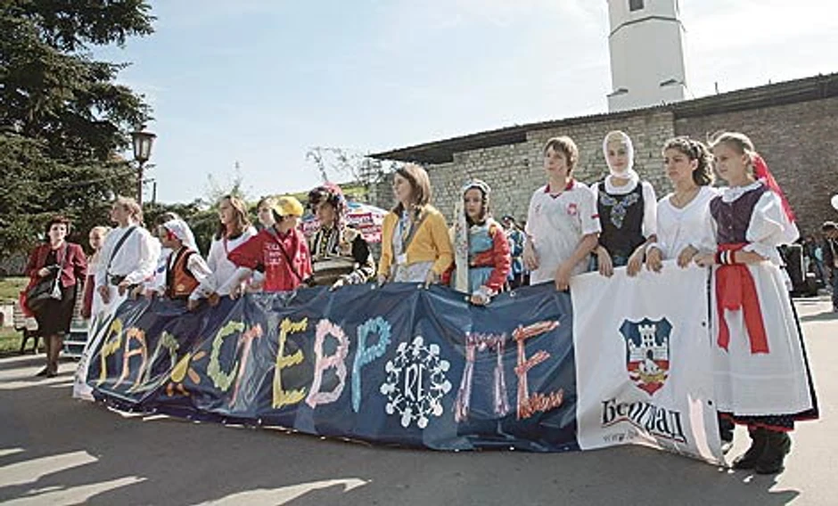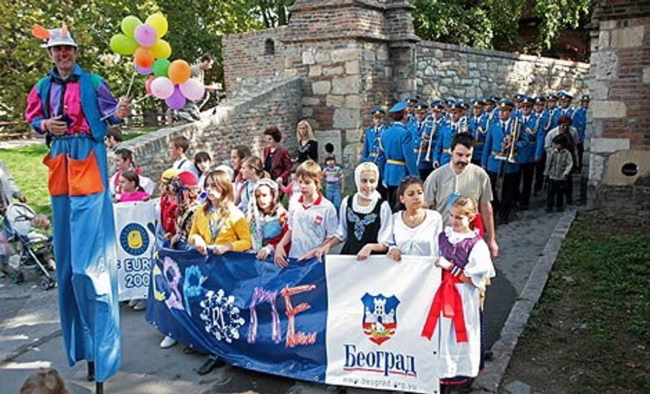 Svečani defile učesnika predvodio je Orkestar garde vojske Srbije, a umetnici iz Napulja „Teatro de la Strada“, uveseljavali su prolaznike izvodeći zanimljive akrobacije. Pedeset mladih motorista iz asocijacije motociklista Srbije priključili su se manifestaciji i poneli pozive deci beogradskih osnovnih škola da dođu i upoznaju se sa svojim vršnjacima iz čitave Evrope. Kad je oko hiljadu i petsto dece nakon šetnje stiglo na Kalemegdan, pomoćnik gradonačelnika, Radmila Hrustanović poželela im je dobrodošlicu i otvorila „dečju nedelju“. Svi učesnici su se predstavili i zahvalili domaćinima, a doneli su i najzanimljivije suvenire iz svojih zemalja. Očekivanja su im uglavnom slična, dobra zabava, sklapanja novih prijateljstava, slikanje, gluma, ples i igra.